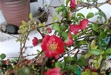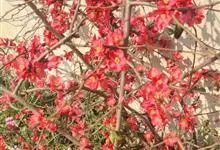 贴梗海棠 Nakai)是蔷薇科、木瓜海棠属植物。落叶灌木,高达2米,枝条直立开展,有刺。叶片卵形至椭圆形,稀长椭圆形,长3-9厘米,宽1.5-5厘米。花先叶开放,3-5朵簇生于二年生老枝上。…全部>>