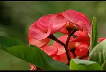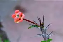 铁海棠为大戟科大戟属蔓生灌木植物;茎多分枝,具纵棱,呈旋转状;叶互生,通常集中于嫩枝上;每个花序基部边缘具微小的红色尖头;苞叶先端圆且具小尖头,无柄,上面鲜红色,下面淡红色;苞片丝状;子房光滑无毛,…全部>>