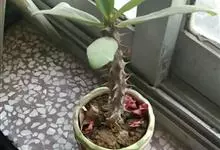 虎刺梅:别称铁海棠,是蔓生灌木植物。茎多分枝,长60-100厘米,直径5-10毫米,具纵棱,密生硬而尖的锥状刺,刺长1-1.5厘米,直径0.5-1.0 毫米,常呈3-5列排列于棱脊上,呈旋转。叶互生…全部>>