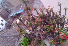虎刺梅:别称铁海棠,是蔓生灌木植物。茎多分枝,长60-100厘米,直径5-10毫米,具纵棱,密生硬而尖的锥状刺,刺长1-1.5厘米,直径0.5-1.0 毫米,常呈3-5列排列于棱脊上,呈旋转。叶互生…全部>>
