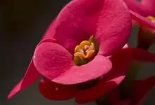铁海棠为大戟科大戟属蔓生灌木植物;茎多分枝,具纵棱,呈旋转状;叶互生,通常集中于嫩枝上;每个花序基部边缘具微小的红色尖头;苞叶先端圆且具小尖头,无柄,上面鲜红色,下面淡红色;苞片丝状;子房光滑无毛,…全部>>
