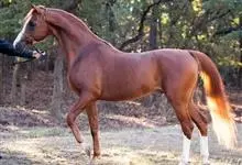 阿拉伯马是奇蹄目马科马属哺乳动物。体格不算大,体质干燥结实。头形轻俊干燥,前额宽广,向鼻端逐渐变细,面部正直或稍凹;耳短小、竖立,眼大有神,两眼距离宽,鼻孔大,下颚深而广;颈长而形美;肩、系较斜,…全部>>