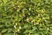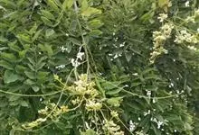槐 Schott),豆科槐属的落叶乔木。树皮暗灰色,树冠球形,老时则呈扁球形或倒卵形。枝叶密生,羽状复叶。圆锥花序顶生,花蝶形,夏季开黄白色花,略具芳香。荚果肉质,念珠状不开裂,黄绿色,常悬垂树梢,…全部>>