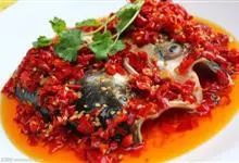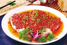 剁椒鱼头是湖南省的传统名菜,属于湘菜系。据传,起源和清代文人黄宗宪有关。通常以鳙鱼鱼头、剁椒为主料,配以豉油、姜、葱、蒜等辅料蒸制而成。菜品色泽红亮、味浓、肉质细嫩。肥而不腻、口感软糯、鲜辣适口。…全部>>