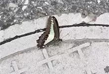 青带凤蝶Graphium sarpedon ,又名青凤蝶,是最普遍的中型凤蝶,飞行速度很快。青带凤蝶的翅膀中央有许多浅蓝色的斑点,很整齐地排列成一条直线。这些斑点由上而下逐渐变大,就像一条青色的带子。全部>>