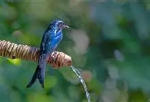 发冠卷尾是中型鸟类,体长28-35厘米。通体绒黑色缀蓝绿色金属光泽,额部具发丝状羽冠,外侧尾羽末端向上卷曲。栖息于海拔1500米以下的低山丘陵和山脚沟谷地带,多在常绿阔叶林、次生林或人工松林中活动。…全部>>