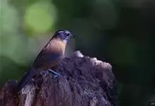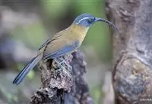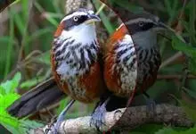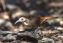 剑嘴鹛:中型鸟类,体长21-22厘米。嘴特别细长而向下弯曲,头顶和头侧烟灰色具长而窄的白色眉纹,在暗色的头上极为醒目,其余上体棕褐色或褐色。颏、喉白色杂有灰色条纹,其余下体锈红色。…全部>>