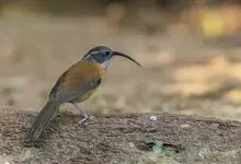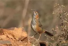 长嘴钩嘴鹛是画眉科、钩嘴鹛属中型鸟类,体长24-27厘米。嘴粗壮、长而尖且向下弯曲。上体橄榄褐色或橄榄棕褐色,颊和耳羽灰褐色,其后有一栗红色斑,耳羽上面从眼后开始有一长的白色纵纹沿颈侧向下。下体白色,…全部>>