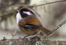 棕头雀鹛为鸦雀科,褐鹛属小型鸟类,体长10-13厘米。头顶栗褐色具黑色侧冠纹。上体茶黄色,飞羽外侧表面灰白色,内侧表面红棕色,内外二色之间夹有黑色。颏、喉白色具不明显的暗色纵纹,胸沾葡萄灰色,…全部>>