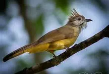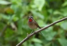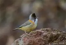 纹喉凤鹛:小型鸟类,体长13-16厘米。头顶和羽冠暗褐色或褐灰色,上体橄榄褐色,飞羽黑褐色,外侧次级飞羽表面橙黄色,构成一块纵形翼斑,极为醒目。颏、喉淡棕白色,具黑色纵纹,腹和尾下覆羽橙黄色。…全部>>