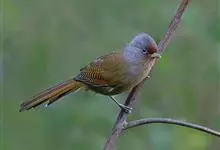 栗额斑翅鹛是噪眉科、斑翅鹛属中型鸟类,体长20-23厘米。头顶具浓密的羽冠,前额栗棕色,头顶灰褐色。上体棕褐色,两翅棕褐色具黑色横斑,翅基外缘有一黑斑,尾呈凸状,棕褐色具黑色横斑。下体棕褐色,…全部>>