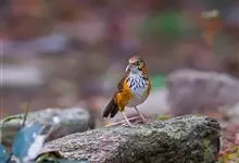 斑胸钩嘴鹛是雀形目、画眉科、钩嘴鹛属的鸟类。体型略大的钩嘴鹛。无浅色眉纹,脸颊棕色。甚似锈脸钩嘴鹛但胸部具浓密的黑色点斑或纵纹。栖息于低山地区及平原的林地灌丛间,在林间作短距离飞翔。…全部>>