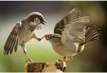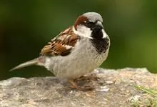 家麻雀:共有13个亚种。是小型鸟类,体长14-16厘米。背栗红色具黑色纵纹,两侧具皮黄色纵纹;颏、喉和上胸黑色,脸颊白色,其余下体白色,翅上具白色带斑。雄鸟与树麻雀的区别在顶冠及尾上覆羽灰色,耳无黑…全部>>