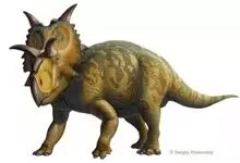 牛角龙是生活在白垩纪晚期的植食性恐龙,距今约7000万年前的北美洲,体长约8米。它有一个巨大的脑袋,脑袋后部还有一个超大头盾,眼睛上面有两只大尖角,…全部>>