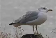 环嘴鸥:是一种常见的鸥, 因嘴巴上的黑环而容易辨认。是中等规模的海鸥。雄鸟比雌鸟大,体长46-54厘米,体重400-700克;雌鸟43-50厘米长,体重300-600克。成鸟翼展大约127厘米。头白…全部>>