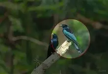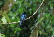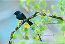 发冠卷尾是中型鸟类,体长28-35厘米。通体绒黑色缀蓝绿色金属光泽,额部具发丝状羽冠,外侧尾羽末端向上卷曲。栖息于海拔1500米以下的低山丘陵和山脚沟谷地带,多在常绿阔叶林、次生林或人工松林中活动。…全部>>