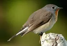 橙胸姬鹟:体长12-16厘米,是一种体型略小的林栖型鹟。尾黑而基部白,上体橄榄褐色,额具一白色横带,两端向上延伸至眼上形成眉斑。翼橄榄色,下体灰。成年雄鸟额上有狭窄白色并具小的深红色项纹,常不明显。…全部>>