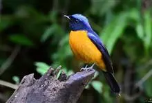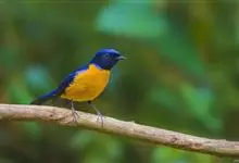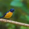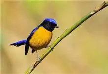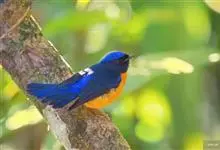 棕腹大仙鹟:体重24-28克,体长15-17厘米,是一种小型的色彩亮丽的鹟。雄鸟上体深蓝,下体棕色,脸黑,额、颈侧小块斑、翼角及腰部亮丽闪辉蓝色。与棕腹仙鹟易混淆,区别在色彩较暗。雌鸟灰褐,…全部>>