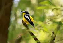 白眉姬鹟是小型鸟类,体长11-14厘米。雄鸟上体大部黑色,眉纹白色,在黑色的头上极为醒目。腰鲜黄色,两翅和尾黑色,翅上具白斑。下体鲜黄色。雌鸟上体大部橄榄绿色。腰鲜黄色,翅上亦具白斑。下体淡黄绿色。…全部>>