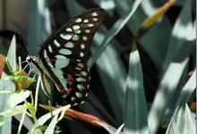 青带凤蝶Graphium sarpedon ,又名青凤蝶,是最普遍的中型凤蝶,飞行速度很快。青带凤蝶的翅膀中央有许多浅蓝色的斑点,很整齐地排列成一条直线。这些斑点由上而下逐渐变大,就像一条青色的带子。全部>>