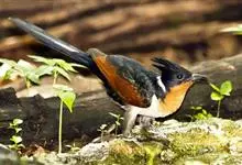 红翅凤头鹃:体长约38厘米,顶冠及凤头黑色,具显眼的直立凤头,背及尾黑色而带蓝色光泽,翅栗红色,喉及胸橙褐色,颈圈白色,腹部近白。虹膜淡红褐色。嘴黑色,下嘴基部近淡土黄色,嘴角肉红色,脚铅褐色。…全部>>