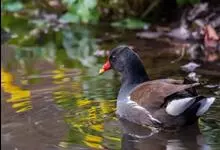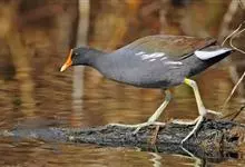 黑水鸡:是鹤形目、秧鸡科的鸟类,共有12个亚种。中型涉禽,体长24-35厘米。嘴长度适中,鼻孔狭长;头具额甲,后缘圆钝;嘴和额甲色彩鲜艳。翅圆形,第2枚初级飞羽最长,或第2枚和第3枚初级飞羽等长,…全部>>