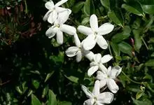 素馨花,木犀科素馨属多年生的攀援灌木植物。攀援灌木,小枝圆柱形,具棱或沟;叶对生,叶轴常具窄翼,小叶片卵形或长卵形;聚伞花序顶生或腋生,花序梗长,苞片线形,花萼无毛,裂片锥状线形,花冠白色,…全部>>
