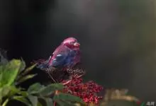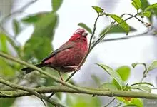 酒红朱雀小型鸟类,体长13~15厘米。雄鸟通体深红色,头部深朱红或棕红色,下背和腰玫瑰红色,眉纹粉红色而具丝绢光泽。两翅和尾黑褐或灰褐色、具暗红色狭缘,内侧两枚三级飞羽具淡粉红色先端。…全部>>