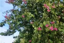 洋紫荆:落叶乔木;树皮暗褐色,近光滑;幼嫩部分常被灰色短柔毛;枝广展,硬而稍呈之字曲折,无毛。叶近革质,广卵形至近圆形,宽度常超过于长度,先端2裂达叶长的1/3,裂片阔,钝头或圆,两面无毛或下面略被…全部>>
