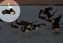 黑颈鹤:是鹤科、鹤属的大型涉禽,体长110-120厘米,体重4-6千克。颈、脚甚长,通体羽毛灰白色,头部、前颈及飞羽黑色,眼先和头顶前方裸露的皮肤呈暗红色,尾羽褐黑色。头顶,三级飞羽的羽片分散,…全部>>