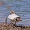 斑头雁是雁形目鸭科雁属鸟类,又称白头雁、黑纹头雁。通体大都灰褐色,头和颈侧白色,头顶有两道黑色带斑;虹膜暗棕色,嘴橙黄色,嘴甲黑色,脚和趾橙黄色;背部淡灰褐色,羽端缀有棕色,形成鳞状斑;颏、喉污白色,…全部>>