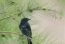 黑卷尾是雀形目卷尾科一属,又称铁练甲、铁燕子、铁林哥、羊蹄刺、榨油郎,体长约30厘米全身蓝黑色而具金属光泽,尾长且分叉较深。幼鸟似成鸟,金属光泽弱,下腹部具近白色的横纹。虹膜暗红色,嘴黑色,脚黑色。…全部>>