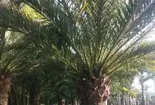 加那利海枣是棕榈科刺葵属植物,因产于非洲的加那利群岛而得名。单干直立,自然高度可达18米,干径50-90厘米,幼时被以枯叶,老树则叶柄基部残存。具波状叶痕,羽状复叶,顶生丛出。雌雄异株,肉穗花序自叶…全部>>