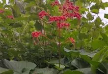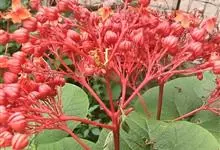 赪桐 Sweet)是唇形科、大青属灌木,高1-4米,叶片圆心形,顶端尖或渐尖,基部心形,边缘有疏短尖齿,表面疏生伏毛,二歧聚伞花序组成顶生,大而开展的圆锥花序,花序的最后侧枝呈总状花序,花萼红色,…全部>>