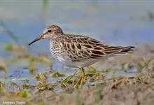斑胸滨鹬小中型涉禽;体长23厘米,翼展37-45厘米,体重126克。嘴形直,有时微向上或向下弯曲;鼻沟长度远超过上嘴的1/2;羽色暗淡,雌雄羽色及大小大都相同;跗蹠后侧具盾状鳞,…全部>>