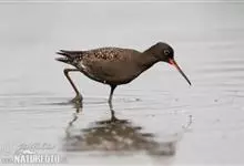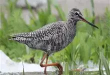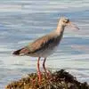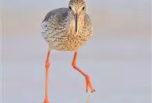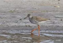 红脚鹬:体长28厘米,上体褐灰,下体白色,胸具褐色纵纹。飞行时腰部白色明显,次级飞羽具明显白色外缘。尾上具黑白色细斑。虹膜黑褐色,嘴长直而尖,基部橙红色,尖端黑褐色。脚较细长,亮橙红色,…全部>>