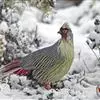 血雉雉科血雉属鸟类,别名血鸡、松花鸡,血雉的雄鸟大覆羽、尾下覆羽、尾上覆羽、脚、头侧、腊膜为红色,故称血雉。其别名甚多,各地皆异。在甘肃,因其胸侧和翅上覆羽沾绿,被称为“绿鸡”;因其羽毛形似柳叶,…全部>>