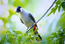 黑喉红臀鹎是雀形目鹎科鹎属鸟类,别称有黑头公、红臀鹎。头顶黑色具光泽;后颈、肩和背暗褐具灰色狭缘;腰羽几纯暗褐,尾上覆羽近白色,羽端浅灰褐色;尾羽褐黑,中央尾羽具狭窄的白色端斑,…全部>>