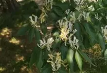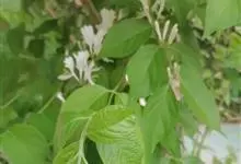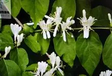 山银花在华南地区野外山林生长。木质藤本,长2~5m。树皮黄褐色渐次变为白色,嫩时有短柔毛。叶对生,卵圆形至椭圆形,长4~8cm,宽3.5~5cm,上面绿色,主脉上有短疏毛,下面带灰白色,密生白色短柔…全部>>