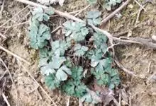 天葵 Makino)是毛茛科天葵属多年生小草本植物,块根长达2厘米,外皮棕黑色。茎高可达32厘米,基生叶为掌状三出复叶;叶片轮廓卵圆形至肾形,小叶扇状菱形或倒卵状菱形,两面均无毛;叶柄长可达12厘米,…全部>>