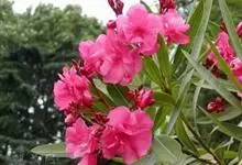夹竹桃,又名红花夹竹桃、欧洲夹竹桃,是夹竹桃科夹竹桃属的一种常绿直立大灌木,枝条灰绿色,含水液。叶披针形,3叶轮生。聚伞花序顶生,花冠粉红至深红色,花冠漏斗状,有特殊香味。蓇葖果,圆柱形。种子长圆形,…全部>>