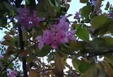 羊蹄甲,别名紫花羊蹄甲、玲甲花,是豆科羊蹄甲属的一种常绿乔木或灌木。树冠开展,枝桠低垂;树皮灰色至暗褐色,近光滑。枝幼时微被灰色短柔毛,后毛脱落;叶硬纸质,近圆形,基部浅心形,…全部>>