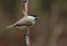 褐头山雀:共有14个亚种,是一种小型的山雀。头顶及颏褐黑,上体褐灰,颊白,颏和喉黑色,下体近白,腹部棕色,两胁皮黄,无翼斑或项纹。与沼泽山雀易混淆,但一般具浅色翼纹,黑色顶冠较大而少光泽,头显比例较大。…全部>>
