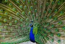 绿孔雀是鸡形目雉科孔雀属鸟类,别名:孔雀、越鸟、爪哇绿孔雀。雄性绿孔雀全身呈翠绿色,并反紫铜色光。头顶有一簇直立的冠羽,尾上复羽发达的约长1米,每羽端部有一个蓝色和翠绿色镶嵌的眼状斑,…全部>>