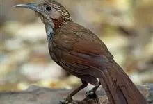长嘴钩嘴鹛是画眉科、钩嘴鹛属中型鸟类,体长24-27厘米。嘴粗壮、长而尖且向下弯曲。上体橄榄褐色或橄榄棕褐色,颊和耳羽灰褐色,其后有一栗红色斑,耳羽上面从眼后开始有一长的白色纵纹沿颈侧向下。下体白色,…全部>>