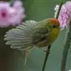 金头穗鹛小型鸟类,体长10~11厘米,是一种黄色小鸟。头顶金黄色有黑色纵纹,眼先黑色,在头、颊和耳羽金黄色的衬托下亦甚醒目。上体橄榄黄色,下体亮黄色,腹和两胁沾绿。…全部>>
