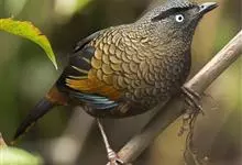 蓝翅噪鹛:噪鹛科、彩翼噪鹛属动物。中型鸟类,体长22-25厘米。上体棕橄榄褐色密被黑色鳞状斑,眼蓝白色,眼上有一长而宽阔的黑色眉纹,从眼先直到颈侧。下体棕褐色被黑色鳞状斑;尾上和尾上覆羽栗色,…全部>>
