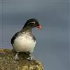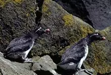 角海鹦:是鸻形目海雀科的鸟类,体重581-648克,体长约32厘米,翼展18-20厘米。是一种身体结实的鸟类,蹼脚、翅膀短,擅长游泳捕鱼,而在陆地上行走时则显得僵硬、步履蹒跚。有一张大嘴巴,呈三角形…全部>>