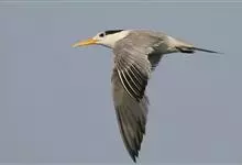 鸥嘴噪鸥,中型水禽,体长31~39厘米。夏羽额、头顶、枕和头的两侧从眼和耳羽以上黑色。背、肩、腰和翅上覆羽珠灰色。后颈、尾上覆羽和尾白色,中央一对尾羽珠灰色。尾呈深叉状。冬羽头白色,头顶和枕缀有灰色…全部>>