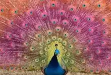绿孔雀是鸡形目雉科孔雀属鸟类,别名:孔雀、越鸟、爪哇绿孔雀。雄性绿孔雀全身呈翠绿色,并反紫铜色光。头顶有一簇直立的冠羽,尾上复羽发达的约长1米,每羽端部有一个蓝色和翠绿色镶嵌的眼状斑,…全部>>